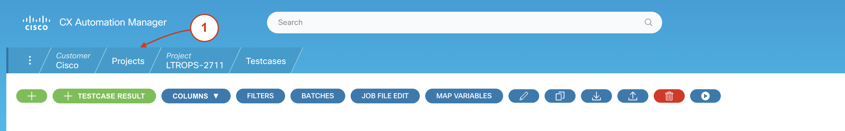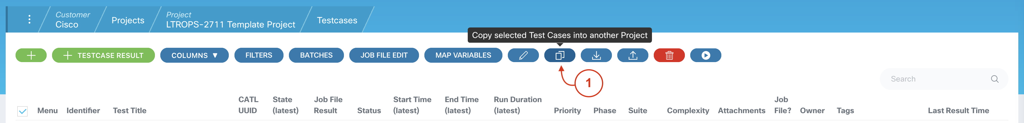 1. Click on the Tests button associated with the LTROPS-2711 project