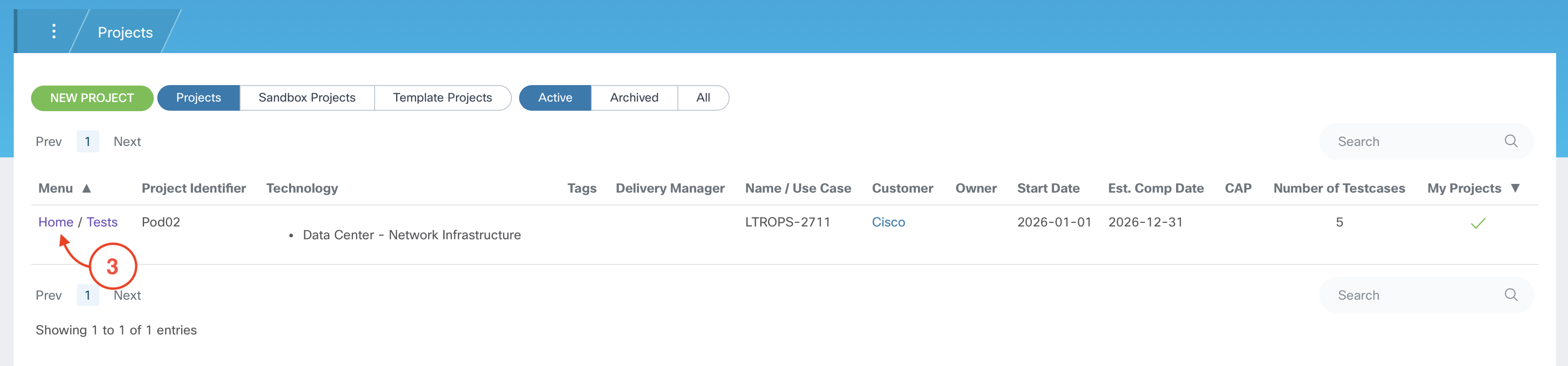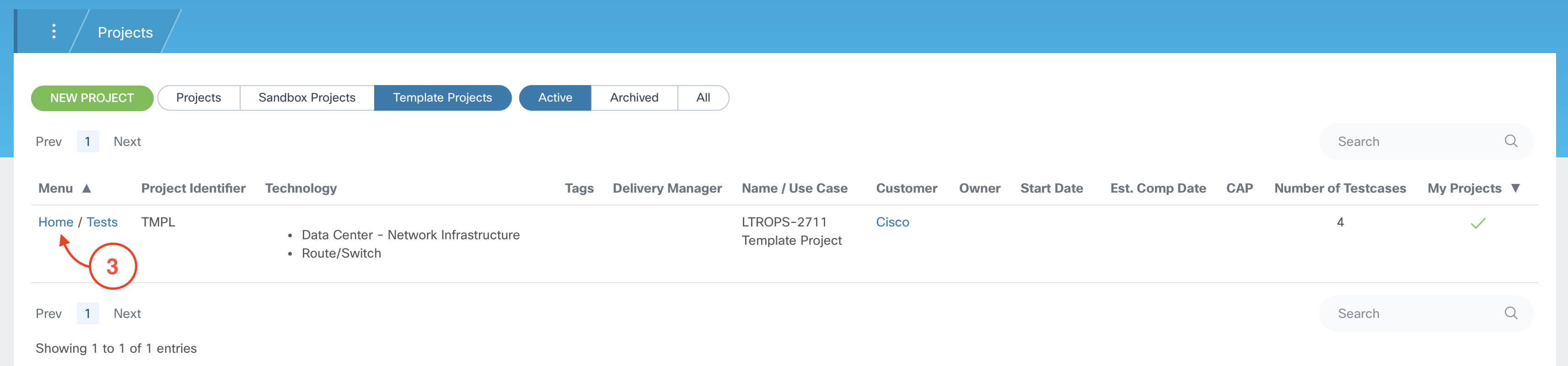 Click on the Home link for the LTROPS-2711 Template Project