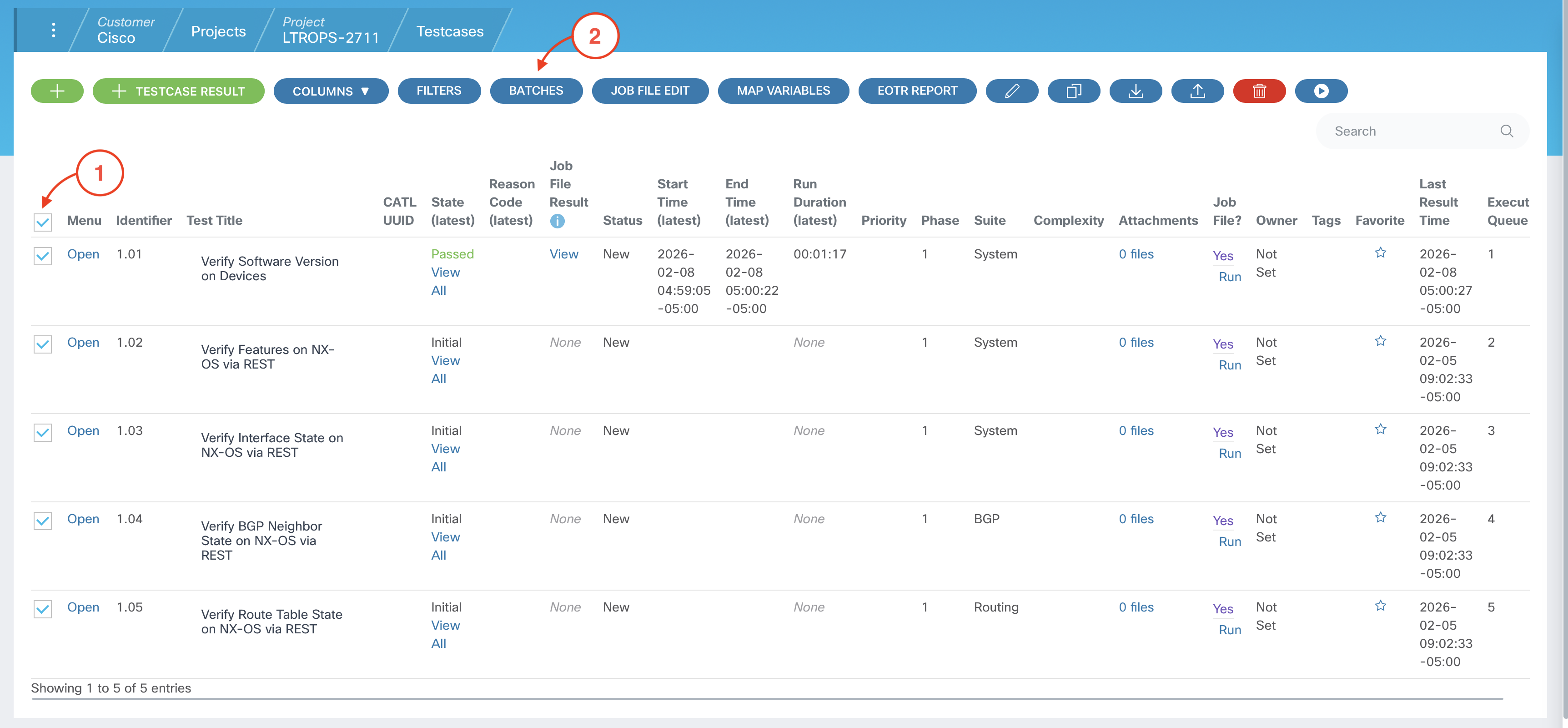 Confirm that all of your test cases appear under Batch Test Cases