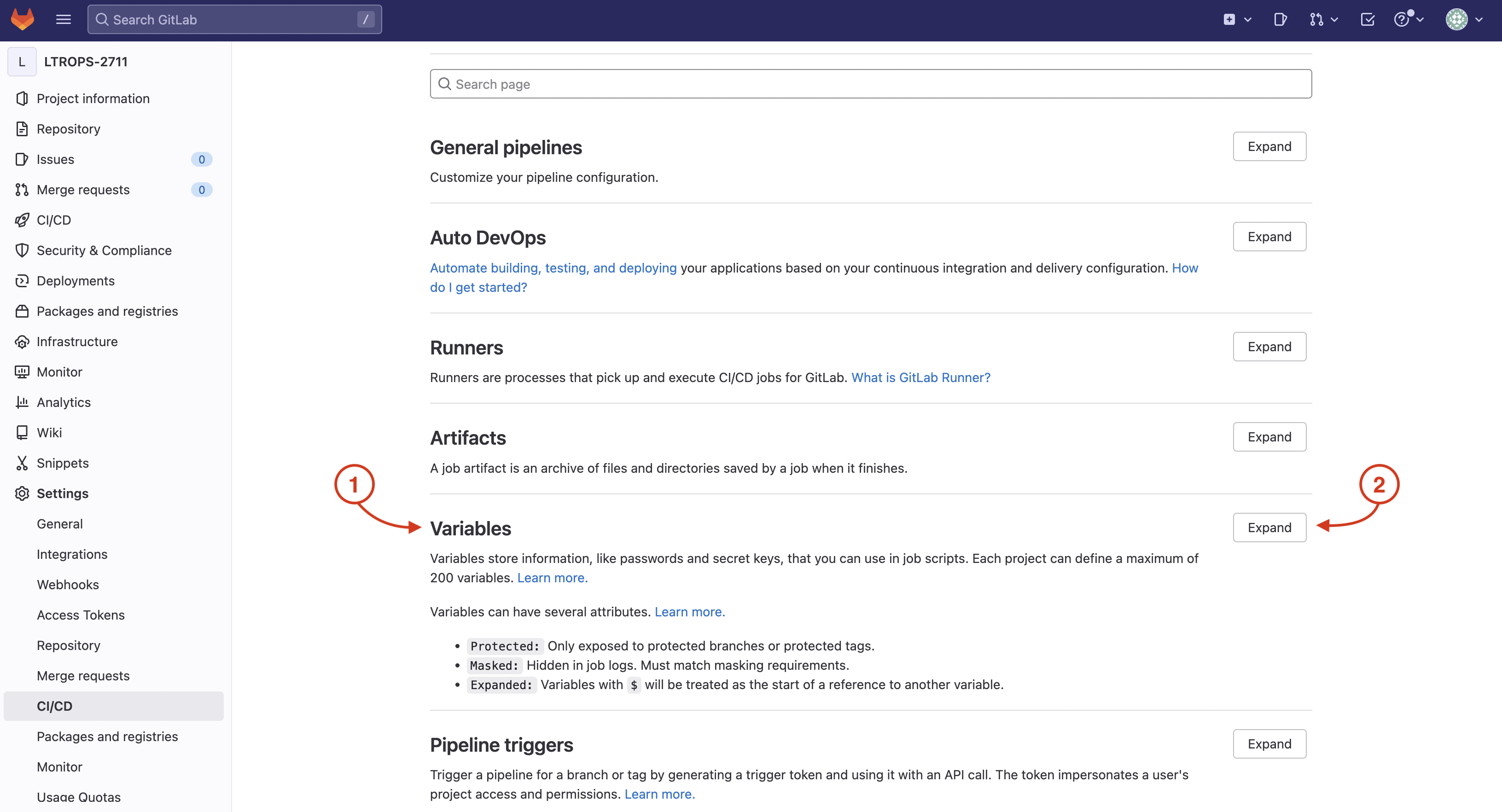 Step 2 - Navigate to CI/CD Variables